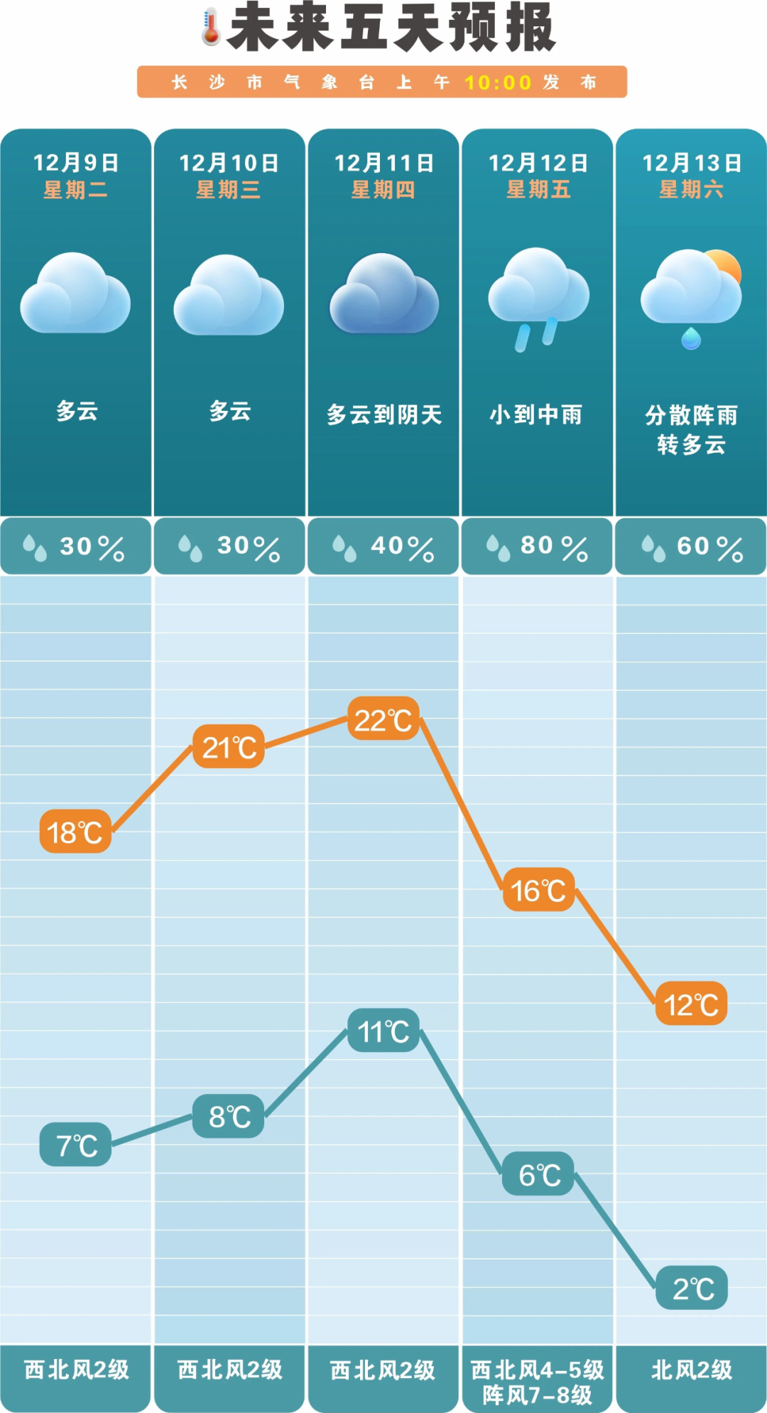 值得注意的是,12月12日到13日受強冷空氣影響,長沙將經歷一次寒潮天氣過程。此次寒潮勢頭強勁,氣象部門預計屆時西北風將加大至4到5級,陣風可達7到8級,氣溫將上演“高臺跳水”,降溫幅度達10℃至12℃,體感上可謂“一夜入冬”。