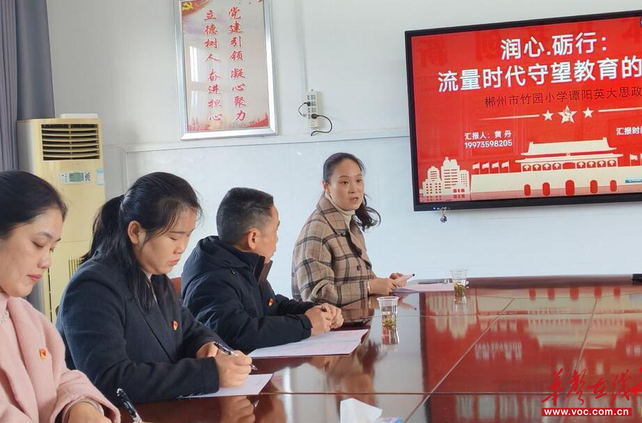 課程展示結束后,竹園小學副校長黃丹圍繞 “如何將思政教育更好地落實到立德樹人根本任務實踐教學中” 這一主題,為廖家灣學校教師帶來了一場干貨滿滿的講座。她結合自身教學經驗,分享了思政教育融入日常教學的實用方法與創(chuàng)新思路,為在場教師提供了寶貴的教學參考,現(xiàn)場交流氛圍熱烈,老師們紛紛表示受益匪淺。